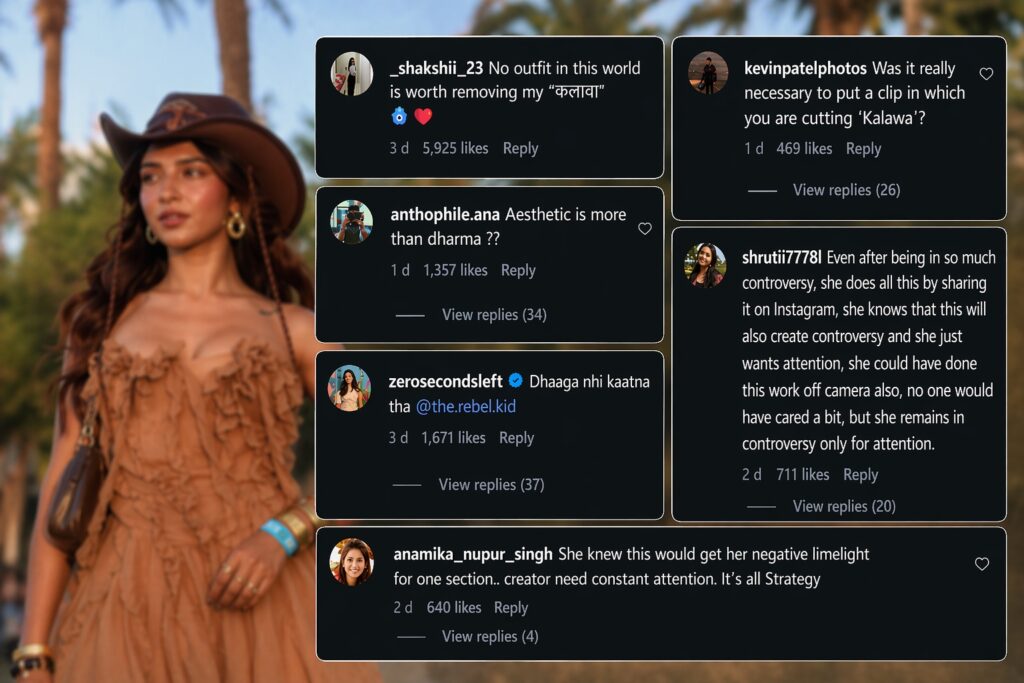 The controversy erupted after she attended Coachella and shared a “Get Ready With Me – Day 1 Coachella” video. In the clip, Apoorva is seen cutting off a kalawa (a sacred religious thread tied on the wrist), despite mentioning that her priest had advised her not to remove it.