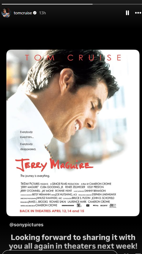 Cruise shared a post on his Instagram story on Wednesday, which featured the film’s poster along with the release dates written over it.