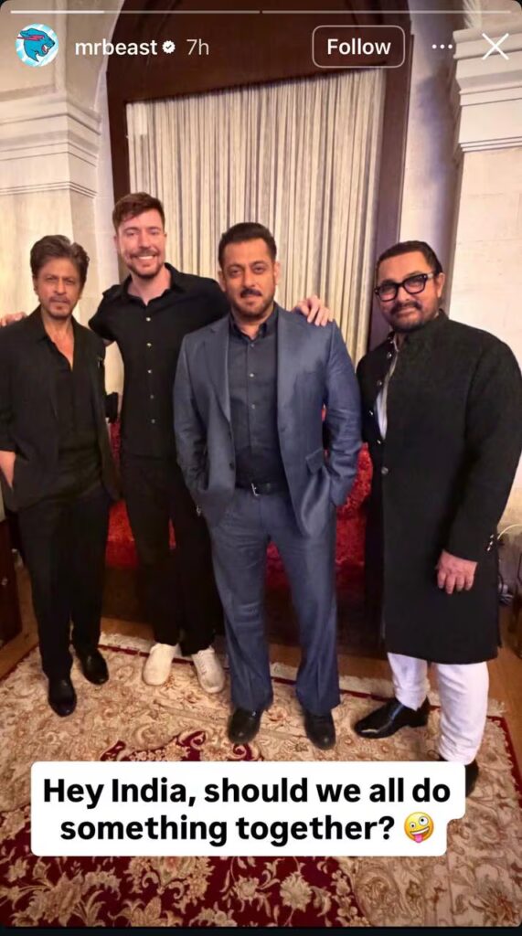 While no official announcement has been made, fans are already dreaming of an epic project bringing together Bollywood’s three biggest stars and YouTube’s biggest creator. Whether it’s a video, film, or digital event, one thing is certain, this iconic photo marks a historic crossover moment between Bollywood and global entertainment.