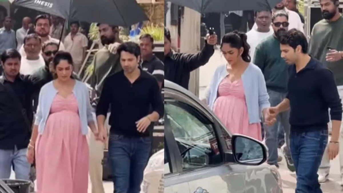 On Thursday, Mrunal Thakur was seen sporting a pregnant look during the shoot, sparking curiosity among fans. In a viral video from the sets, the actress is seen glowing in a pink maternity dress paired with a light blue cardigan. With her hair tied in a ponytail, she walks hand in hand with Varun Dhawan through a bustling street set, surrounded by security personnel.