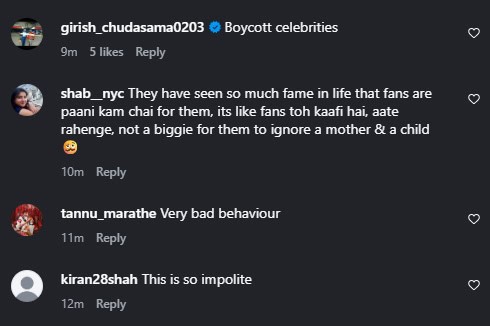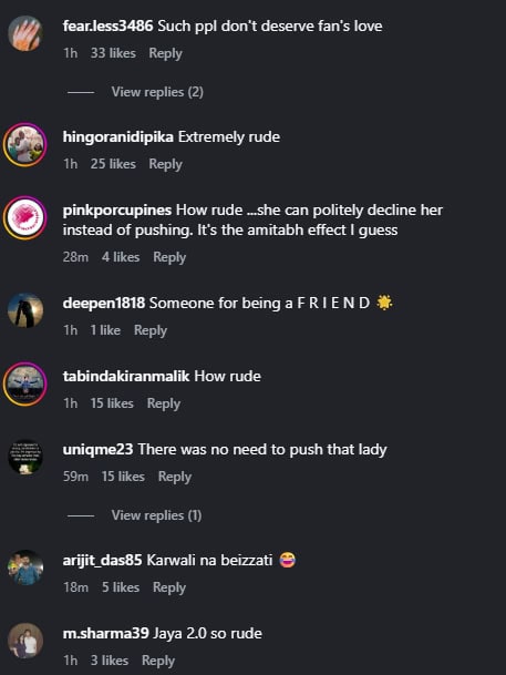 One comment read, “I feel bad for the woman… what was so difficult to spend a few seconds for someone who calls you their fan?” Another lamented: “Then what’s the difference between Jaya and Rekha?” A third added, “Stop worshipping celebrities.”