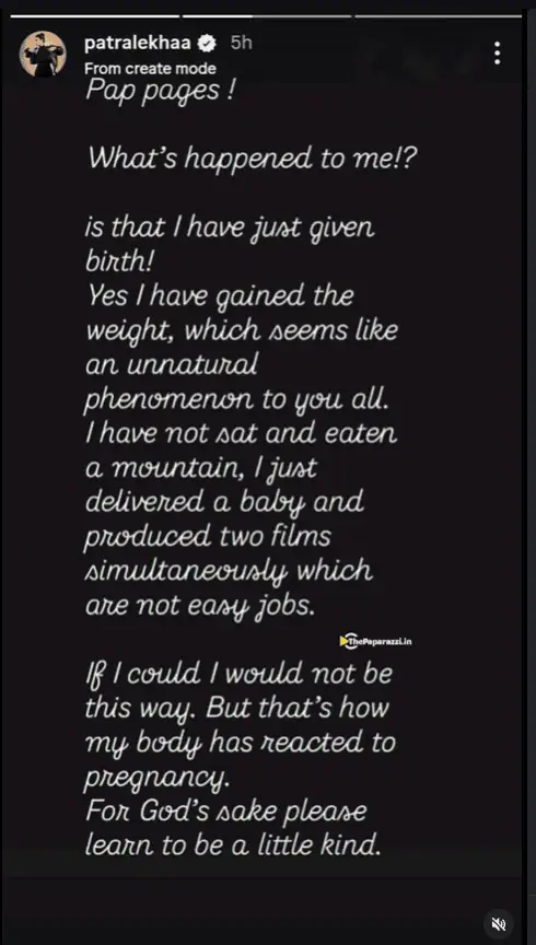 Responding strongly, Patralekhaa took to Instagram and addressed the narrative head-on. In her story, she wrote:
