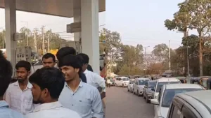 Hyderabad: Long queues of cars and autorickshaws began lining up in Hyderabad on Monday, January ...