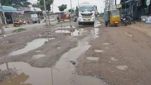 Hyderabad: The road stretch from Shaheen Nagar to Pahadi Shareef in Hyderabad has become extremely dangerous as it is filled with large potholes, putting the